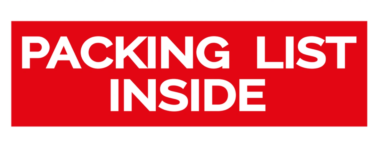 Un de nos modèles d’étiquettes d’avertissement sont les étiquettes “Packing list inside' (ce colis contient le bon de livraison). Ces étiquettes sont faites à partir de papier épais blanc brillant et elles ont de la colle permanente.