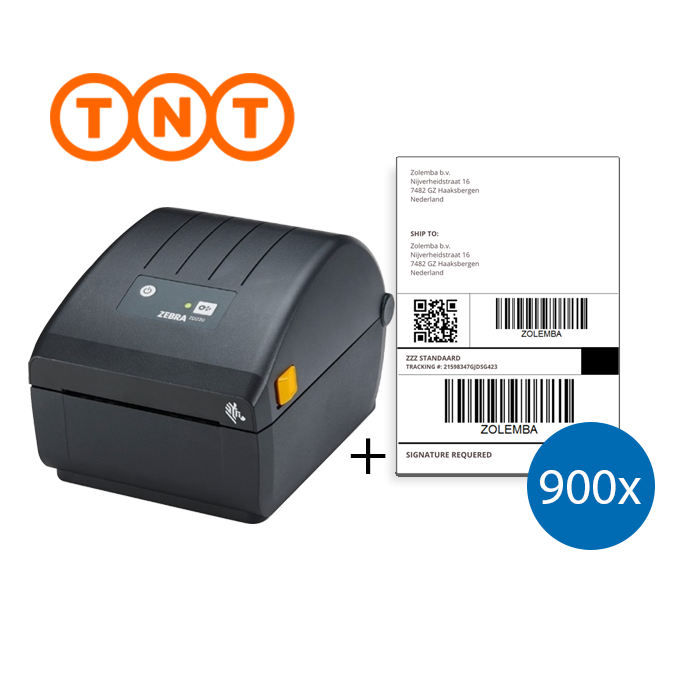 Tout ce dont vous avez besoin en un seul forfait. Avec une imprimante d'étiquettes Zebra + 1 000 étiquettes d'expédition, vous êtes prêt à expédier! Dans ce forfait, vous recevrez une imprimante d'étiquettes Zebra ZD220D, y compris les étiquettes d'expédition correctes pour TNT. Ces étiquettes sont en matériau thermique et ont une force adhésive permanente.